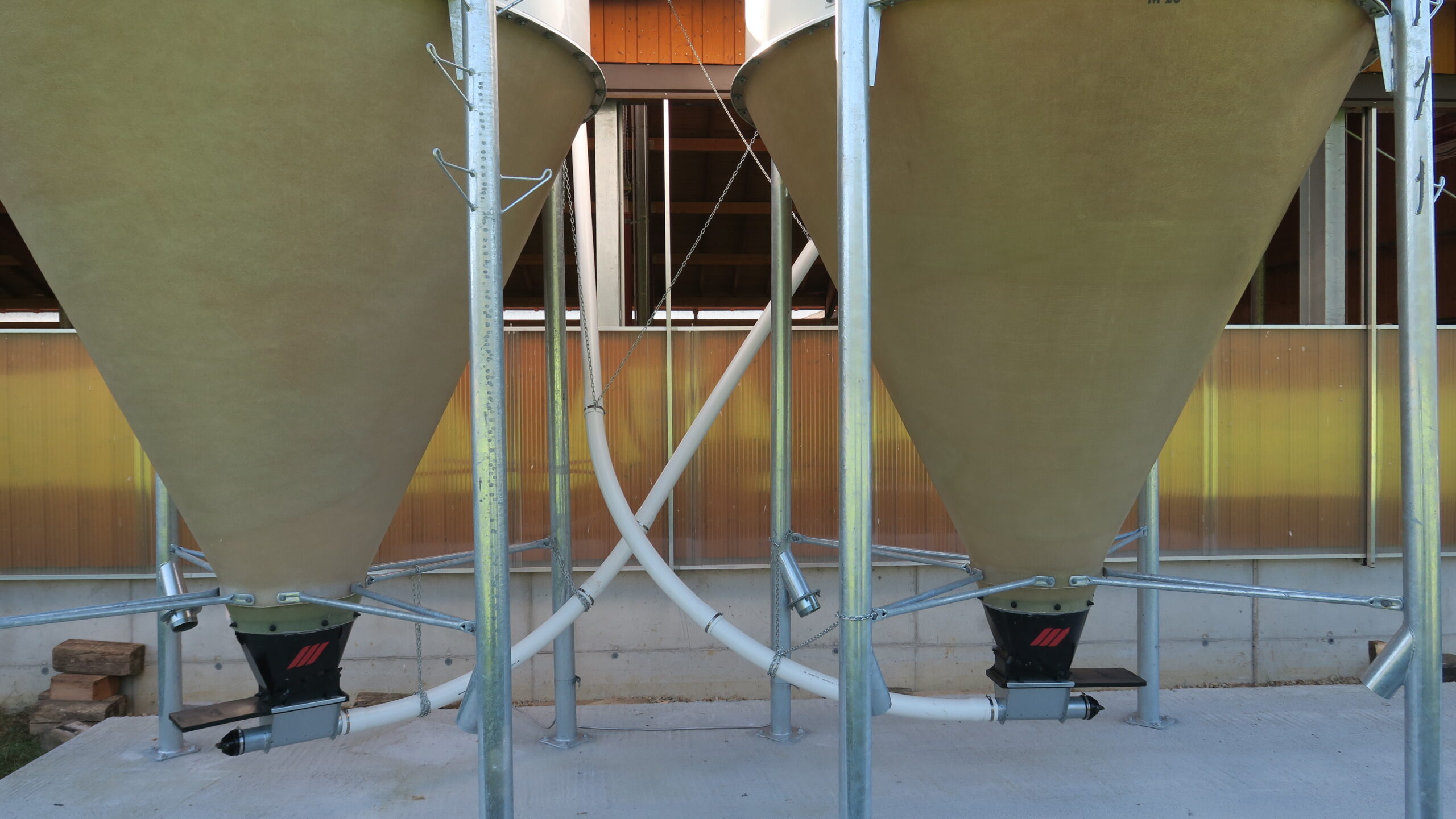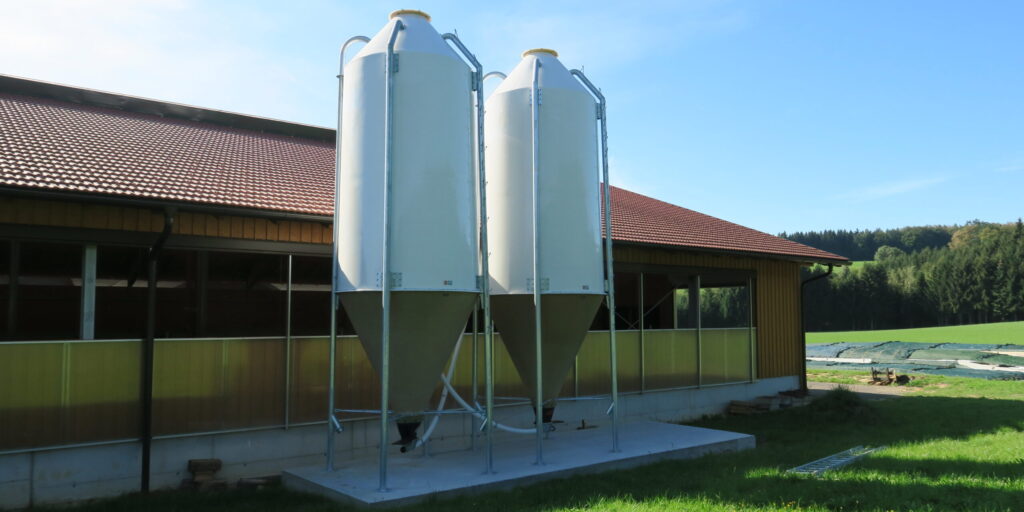 | Spiralschnecke | Mit unseren flexiblen Spiralschnecken wird das Futtermittel schonend bis zu 60m weit transportiert. Wir liefern Spiralschnecken in Ø75mm, Ø90mm und Ø125mm je nach Förderleistung und Transportweg. Der Kunststoffaufnahmetrichter ist mit einem Absperrschieber versehen und mit 0° oder 30° einstellbar. Zur Montage an einem Sacksilo gibt es ein eigenes Übergangsstück. Die Kunststoffrohre sind 300cm lang, die Bögen haben 45°. Weiters gibt es zusätzliche Ausläufe und Füllstandsensoren. |