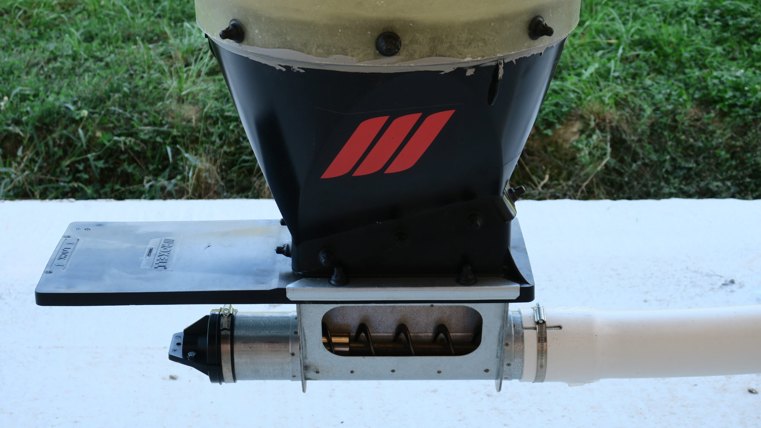 | Förderschnecke | Starre Förderschnecken werden z. Bsp. zur Befüllung eines Mischwagens verwendet. Die Schnecken sind verzinkt und werden mit Motorabdeckung und Auslaufschlauch geliefert. Die Förderleistung ist höher als bei Spiralschnecken. |