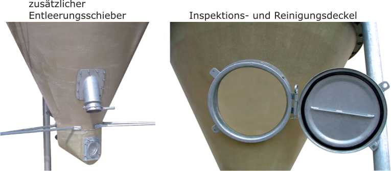 Auf Wunsch ist folgendes Zubehör für Polyestersilos lieferbar:
