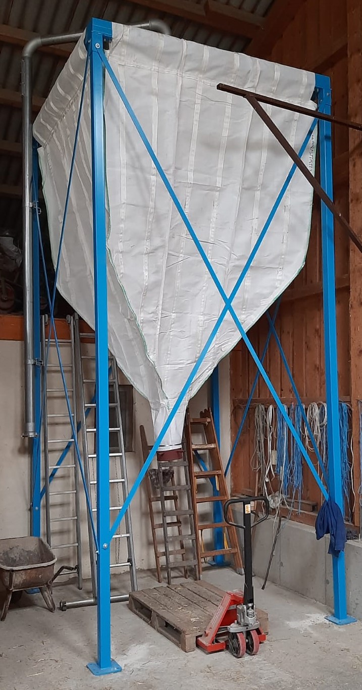 Ein Jumbo-Silo nützt optimal den vorhandenen Platz aus, entleert sich jedoch nicht selbstständig – kein Problem wenn man den Entleerungsschieber manuell öffnet. |
