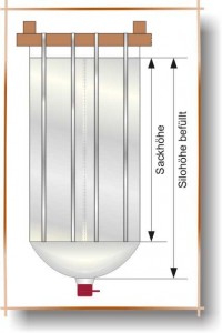 Jumbo-Silos werden je nach Befüllzustand um ca. 50-70cm länger – vollbefüllt baucht der Boden unten ca. 50cm aus, der leere Sack ist bis zu 70cm länger!