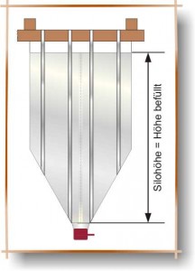 Dieser Silotyp wird befüllt nur ca. 10cm länger und verjüngt sich zum Auslauf hin, so fließt das Schüttgut sehr gut nach.